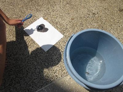 7月半ば、夏休み直前のある日、シュワッチの玄関で虫メガネを使って遊びました。