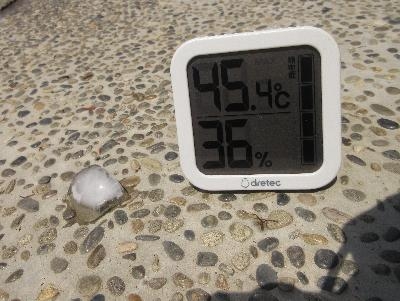 地面に置いた温度計はなんと45℃!