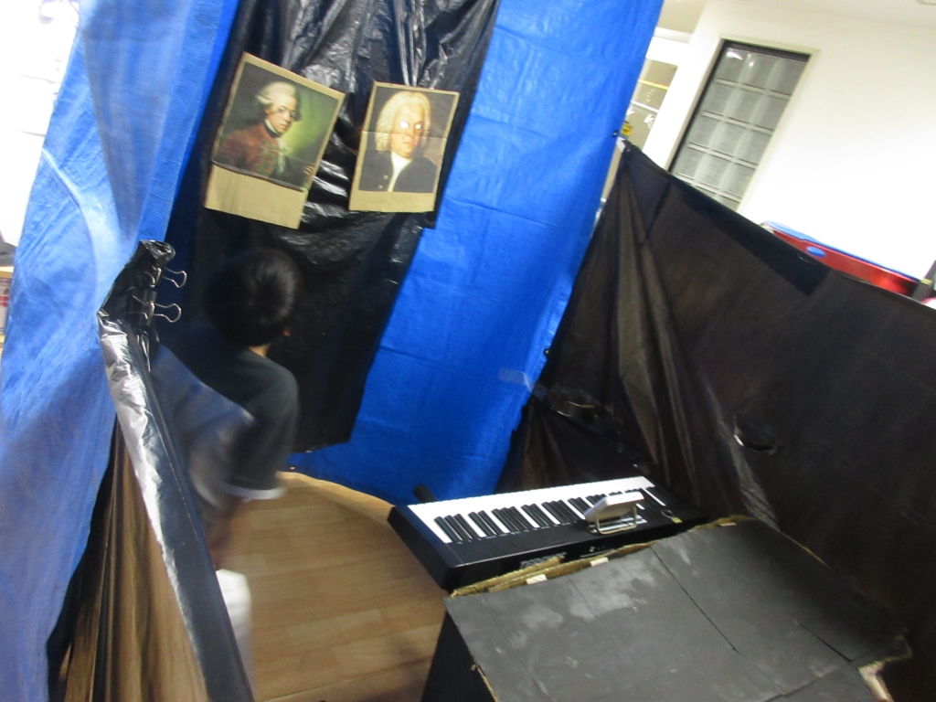 音楽室チームは電子ピアノが勝手に鳴り始める仕掛けを考えたり、音楽家の肖像画を飾ったり。