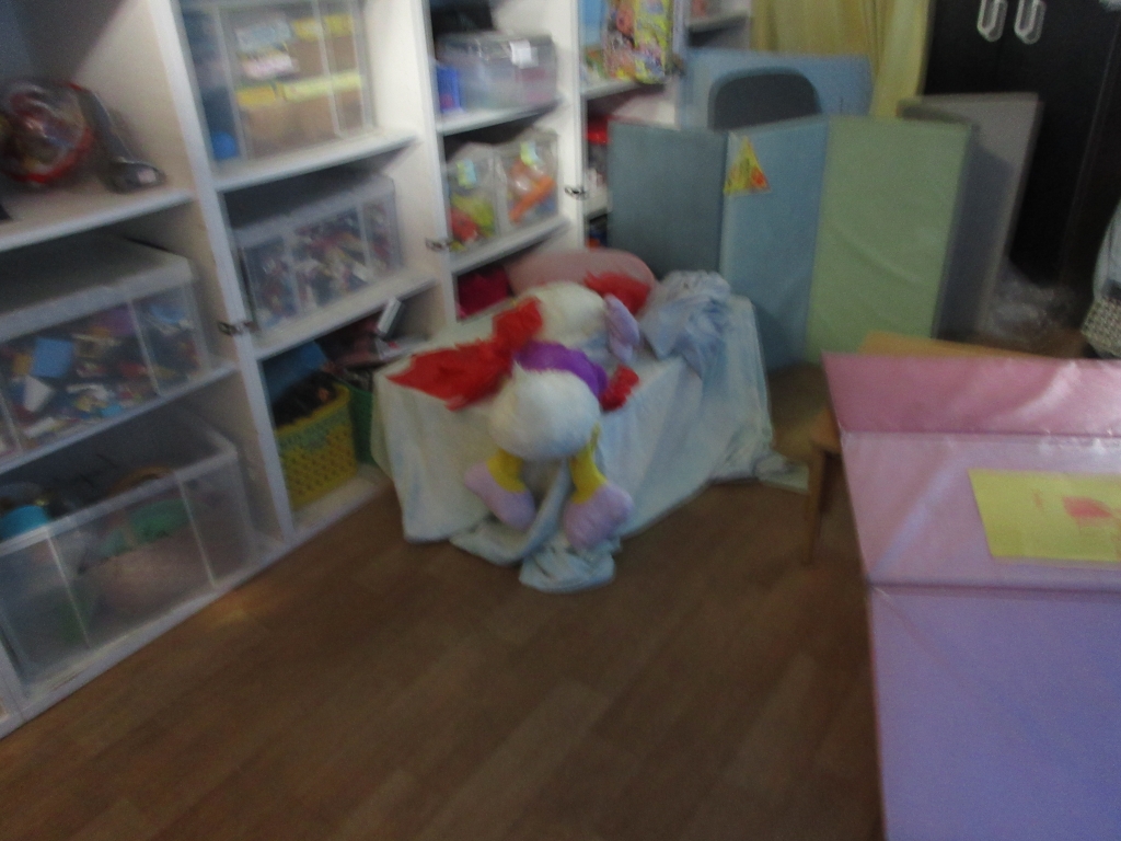 保健室チームはテーブルと大きなタオルケットを駆使してベッドを制作。その下からお化けが手を伸ばしていきます。