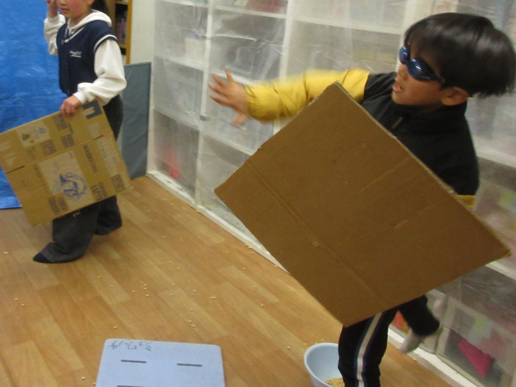 事前にダンボールをたくさん用意してみんなには自身の身を守る盾を作っておいてもらいました。